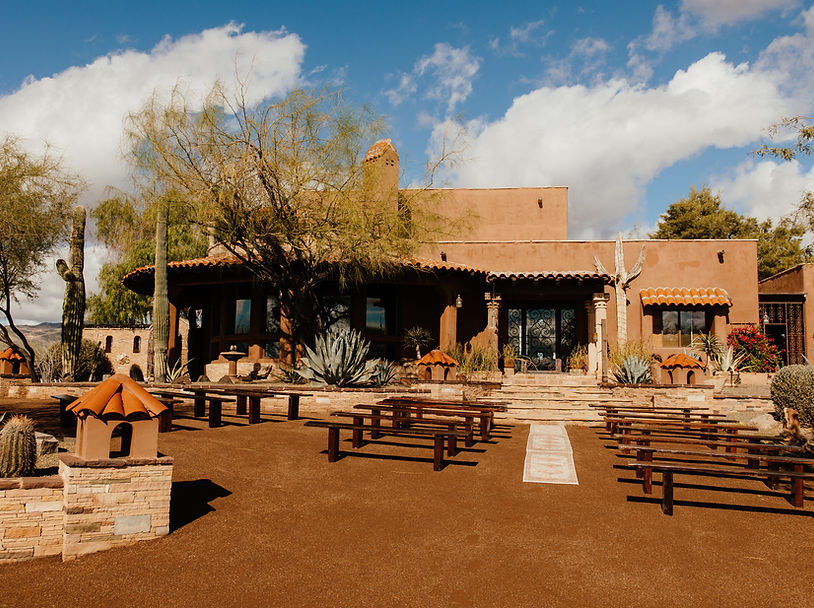 Discover the magic of an event venue nestled in the heart of the Sonoran Desert. Our Spanish-style architecture with sweeping stairways and covered patios offers endless views of the desert and mountains, providing a unique and unforgettable private setting for your special day.